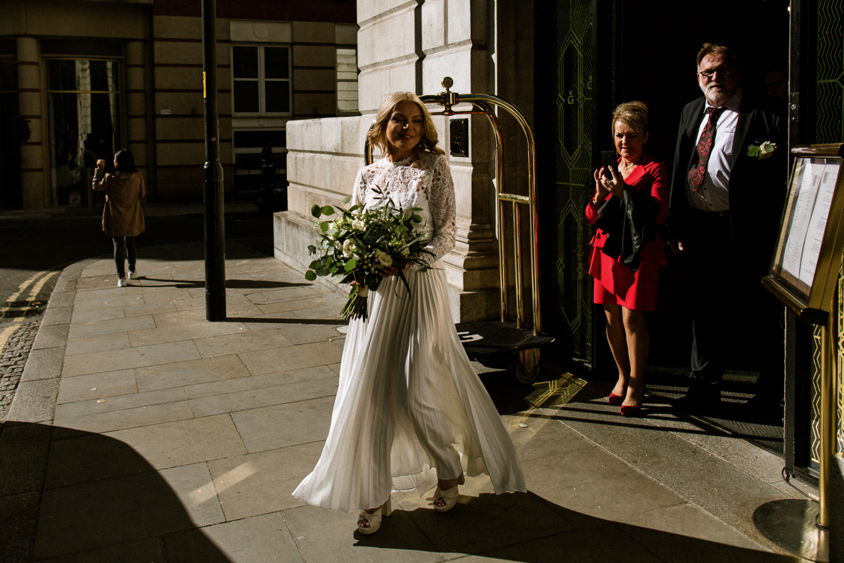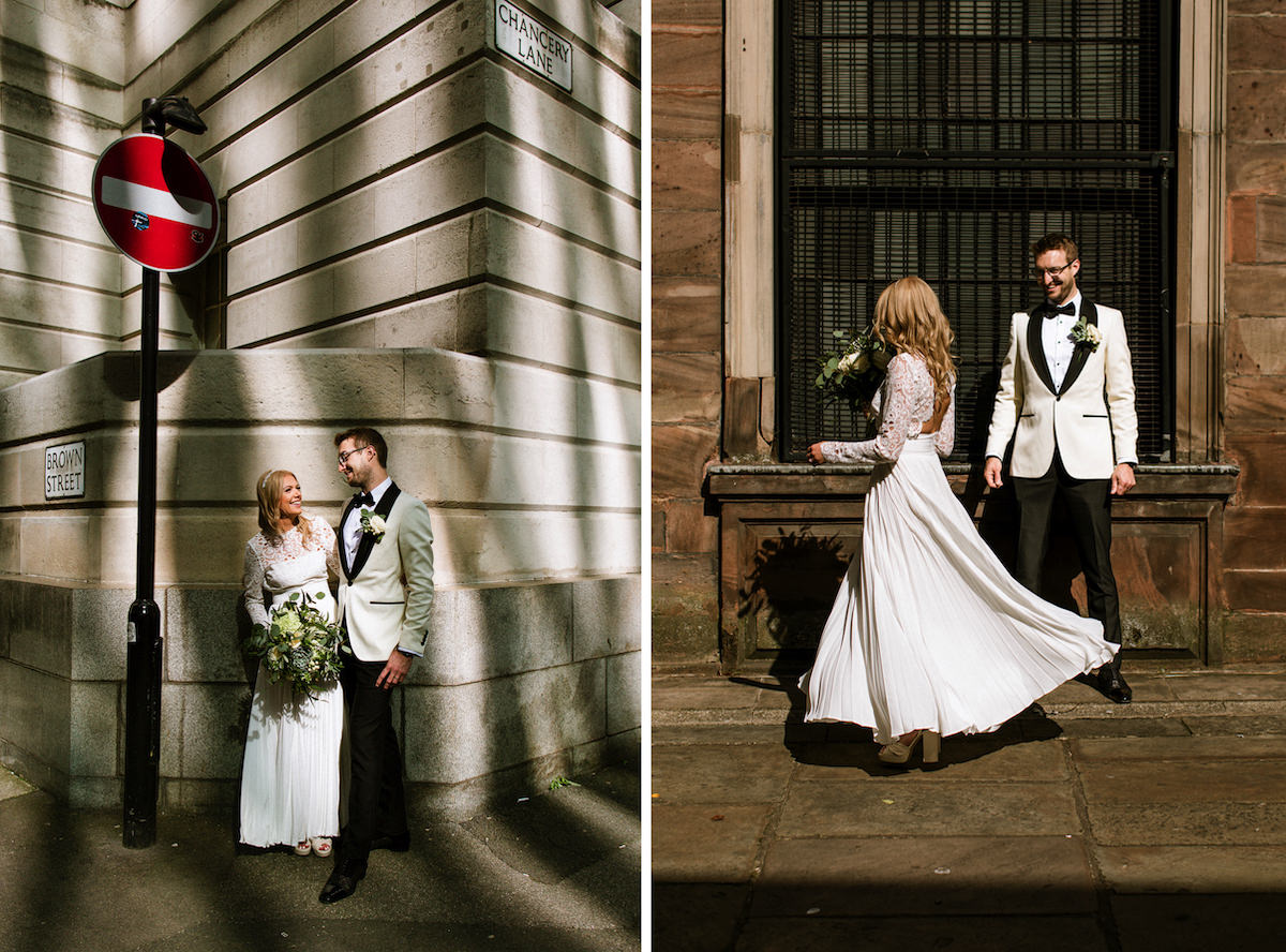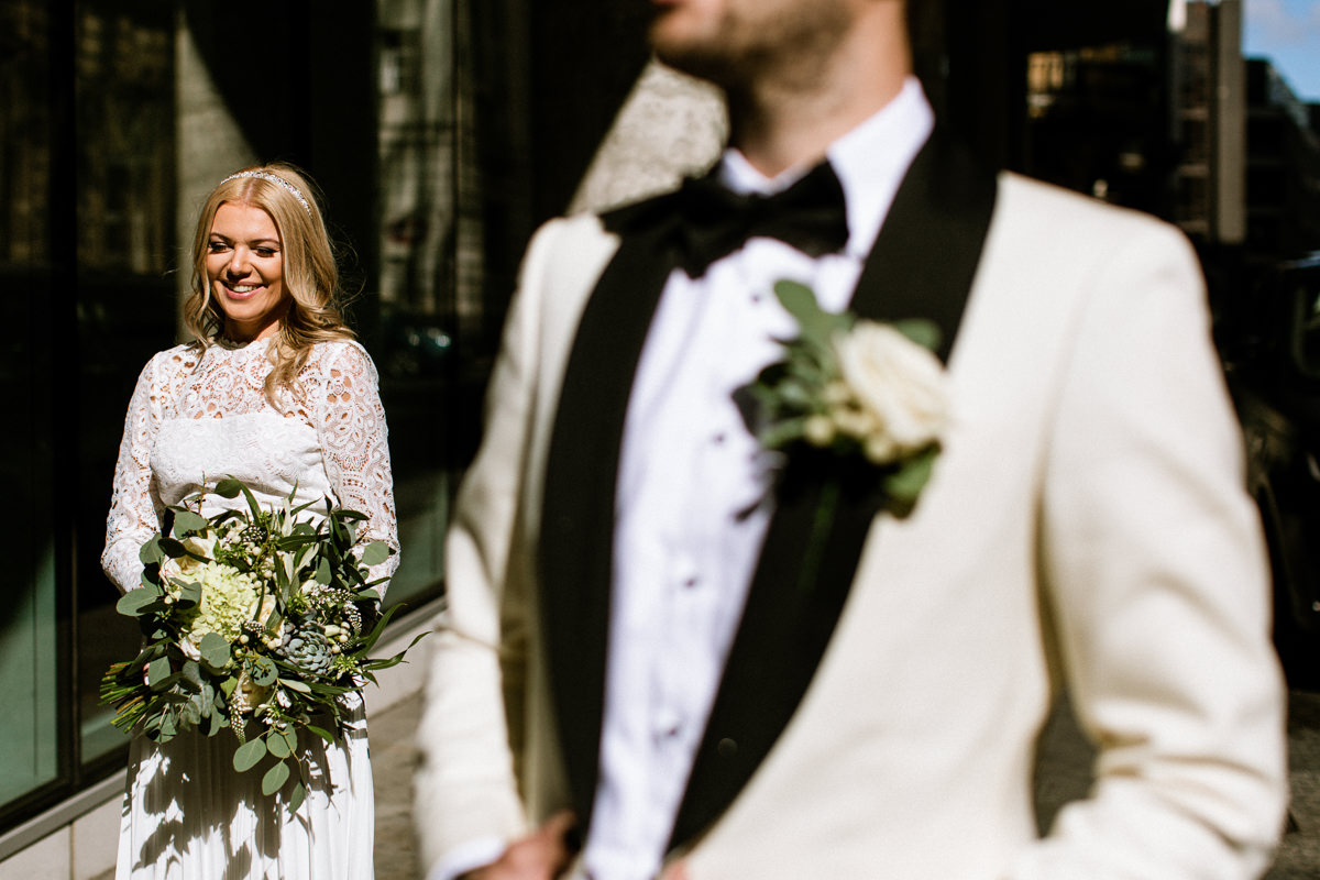 It was a beautiful sunny walk to the ceremony, Manchester is such a glorious city in the late Summer sunshine. I’m always a big fan of walking through a city with my couples, either pre or post ceremony. There is always that feeling of excitement and anticipation, and there’s always a look.