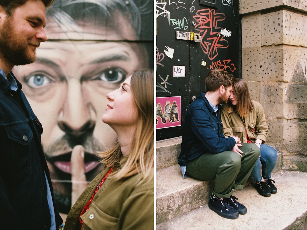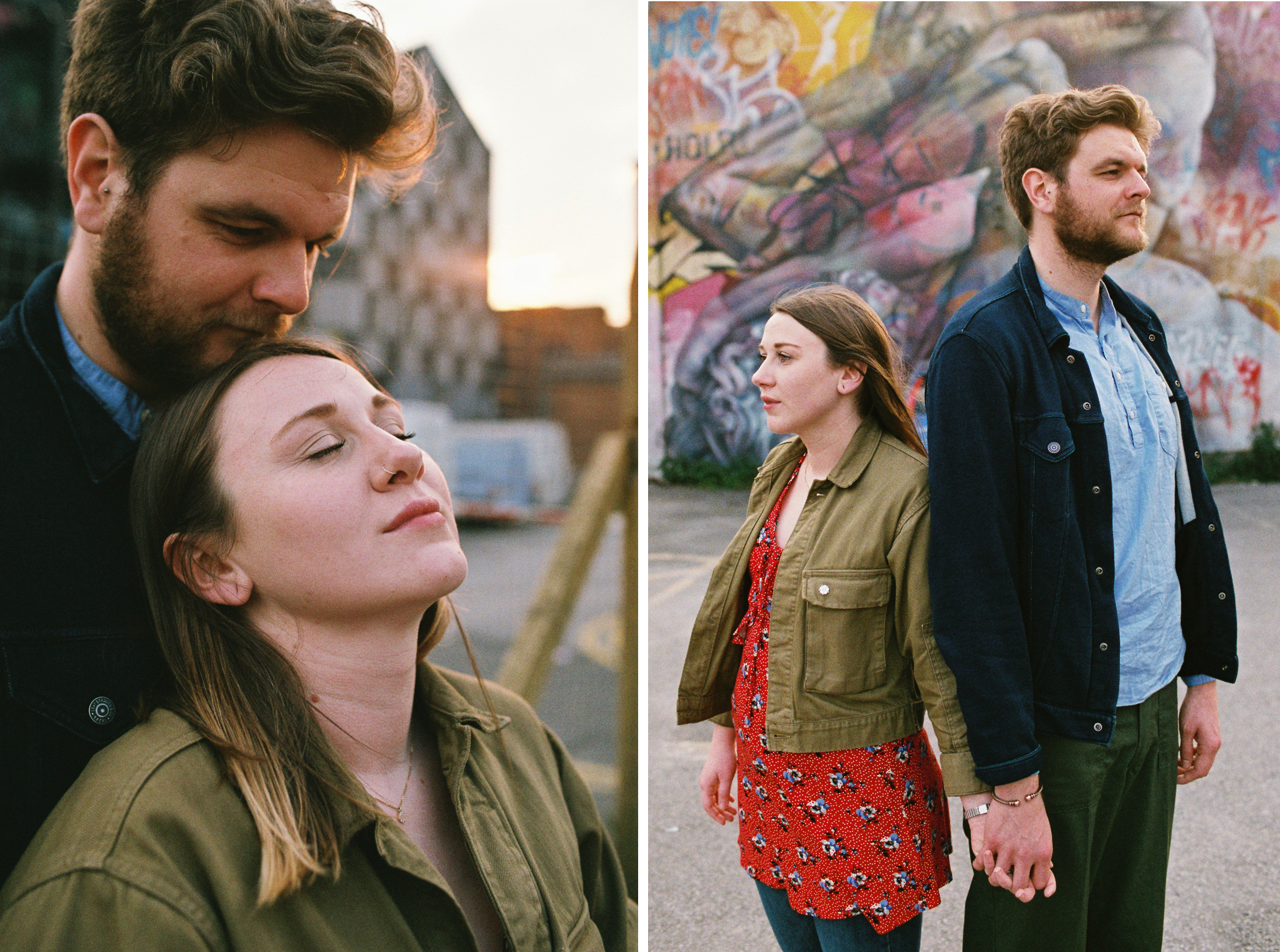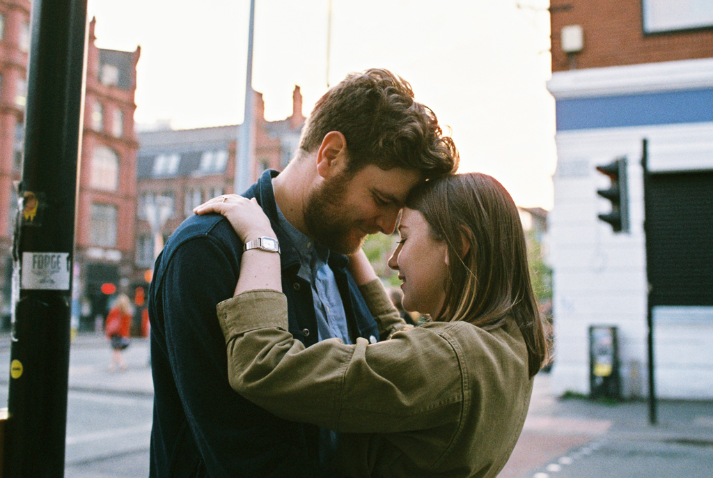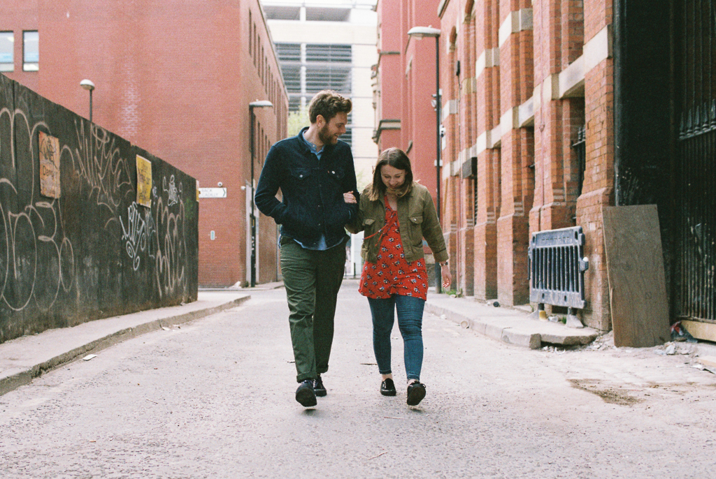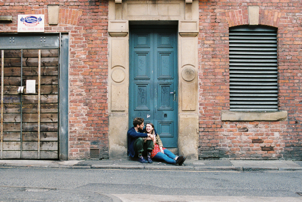 Jess and Andy’s pre wedding portrait session on film in the Northern Quarter , Manchester. Now, those eagle eyed amongst you may realise that this portrait session is old. David Bowie was rocking the mural space on Stevenson Square, it was a really good era. This portrait session happened 10 years ago now, which feels crazy to me how time has flown by. The reason I’m showing this now is to show how ageless film can be. Sure, some things change; fashion, murals, and surroundings. A lot of the buildings we used as backdrops no longer exist, it’s changed a LOT in Manchester in that amount of time. but I think there’s something about the look and feel of film that can make images feel timeless. what do you think?